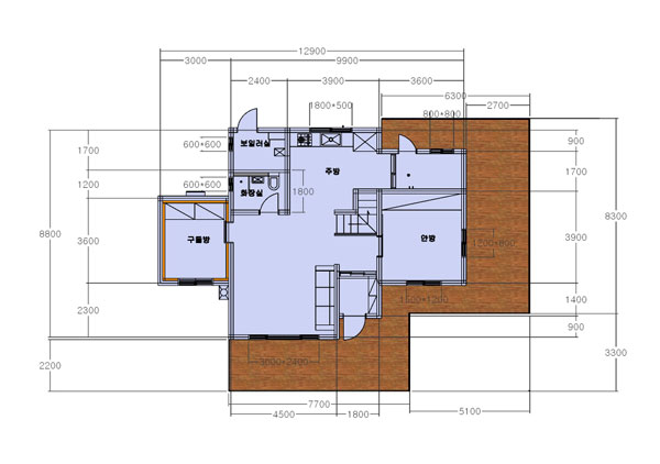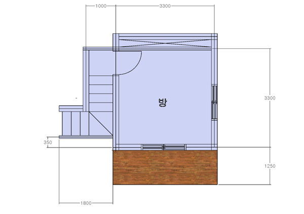 2층은 마을 전망을 볼수 있는 발코니를 설치 하고 겨울에 바람이 많은 지역이라 북쪽벽을 공기층 공간으로 벽을