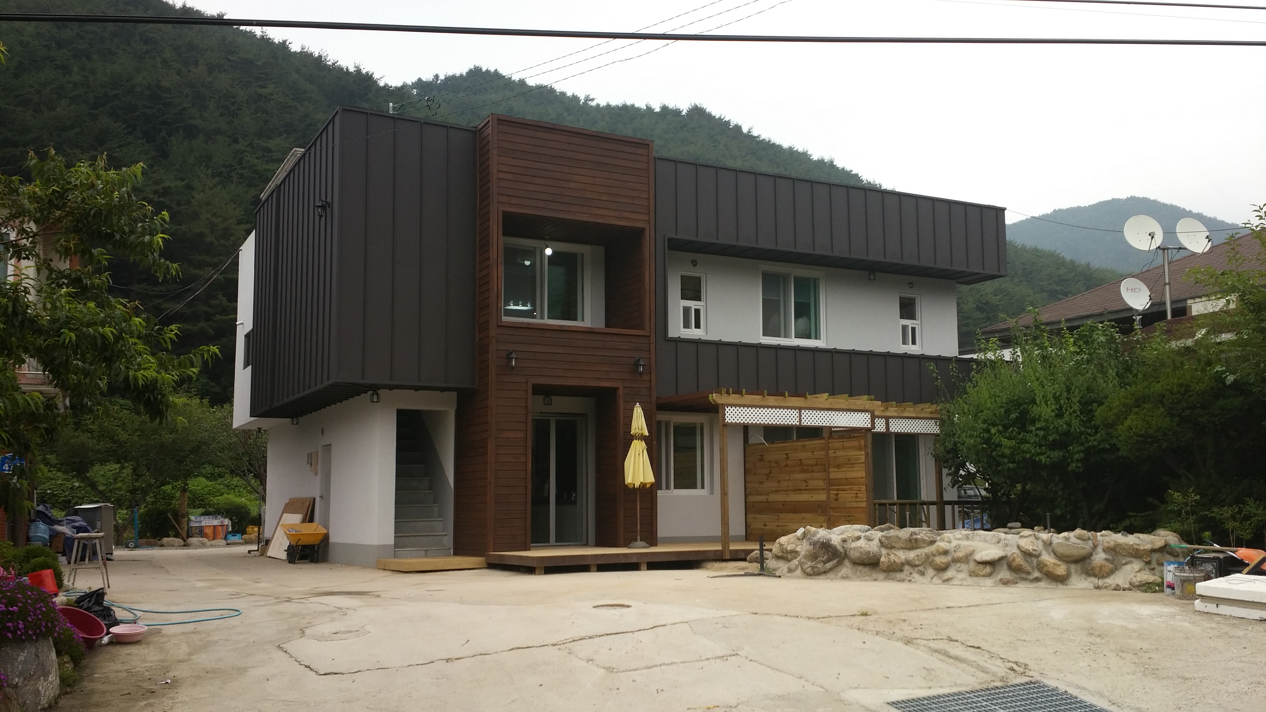 외장공사가 마무리되었습니다. 징크와방부목 드라이비트를 외장재로 사용여 새로운 모습으로 탈바꿈 하였습니다.