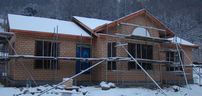 외부에 벽돌을 쌓고 나니 첫눈이 내렸습니다.