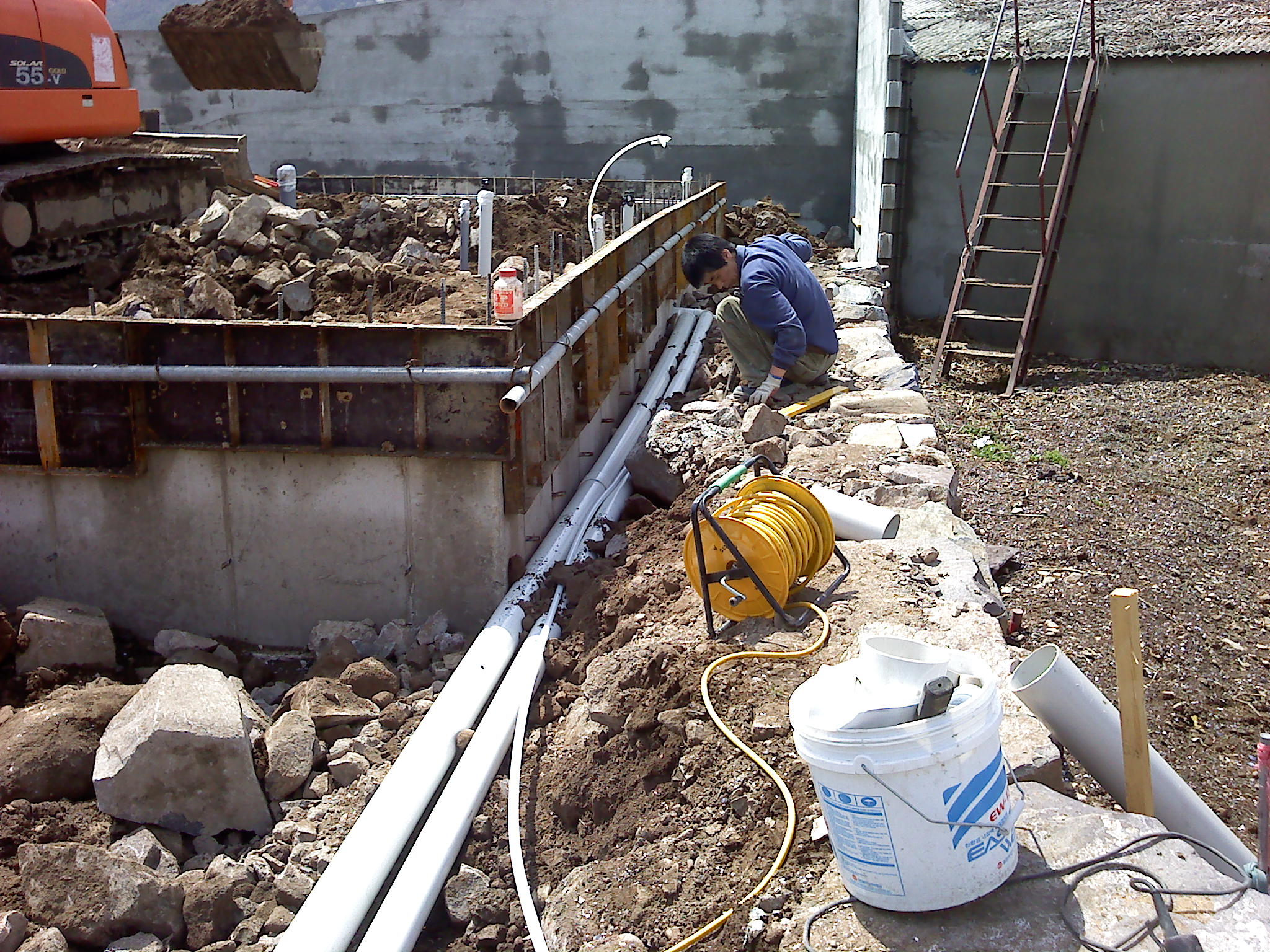 농사용창고와 담장들이 대지 경계에 있어서 터파기가 힘들었지마 조심스럽게 성토 작업도 하고 형들을 세워 기초공사를 하고 있습니다.