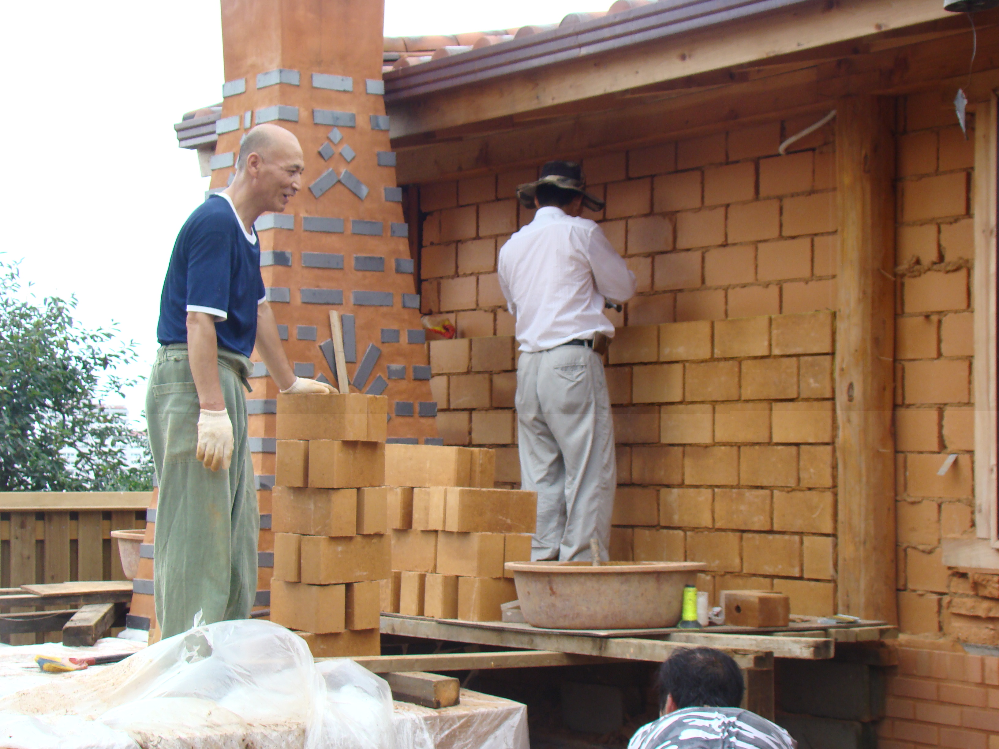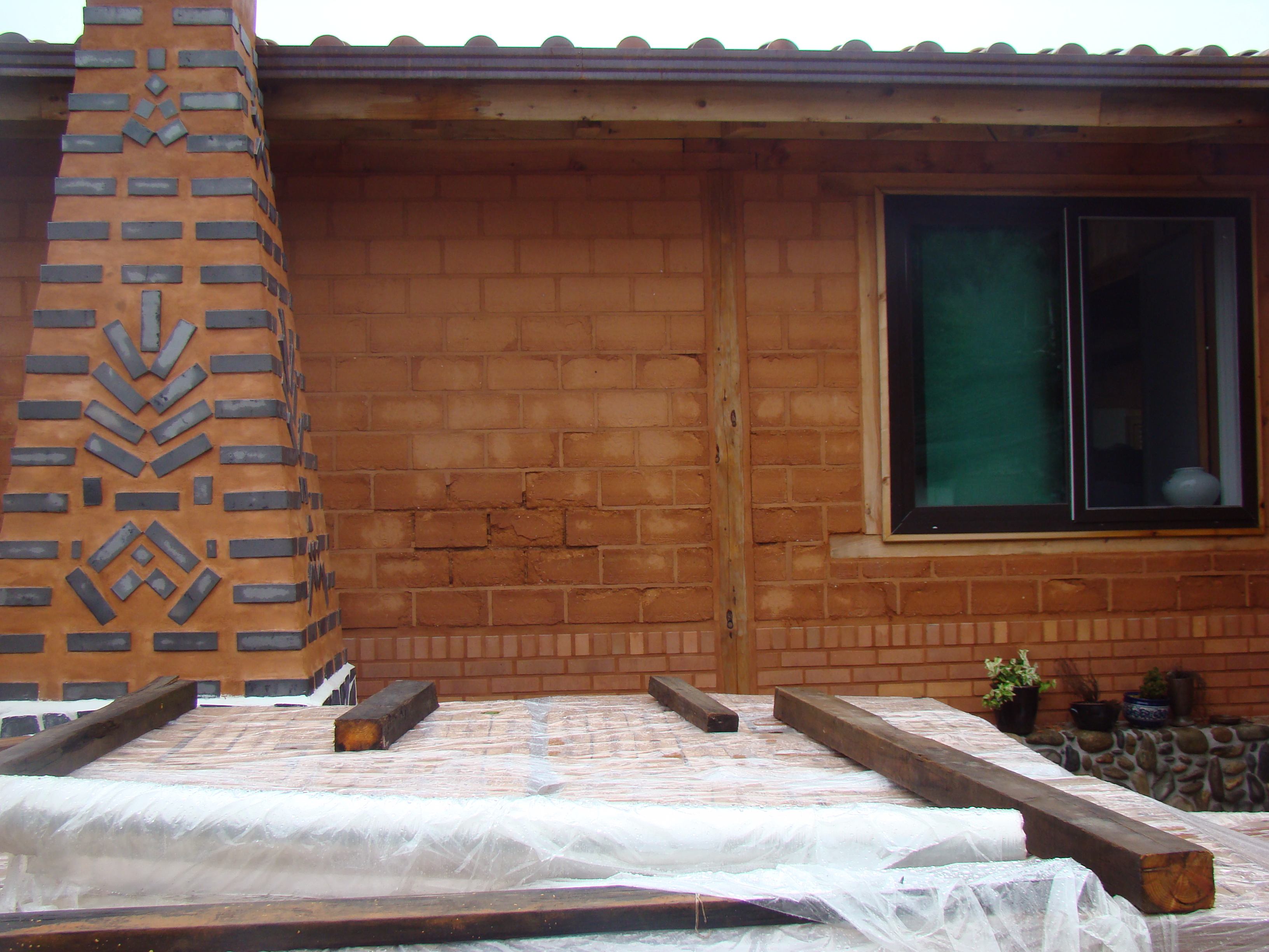 배부에 쌓는 벽돌과 외부에 쌓는 벽돌은 다르다. 내부는 진공토룡기에서 빼낸 순수 황토로 제작을 제품을 사용하고, 외부는 황토와 볏집 그리고 석고를 썩어서