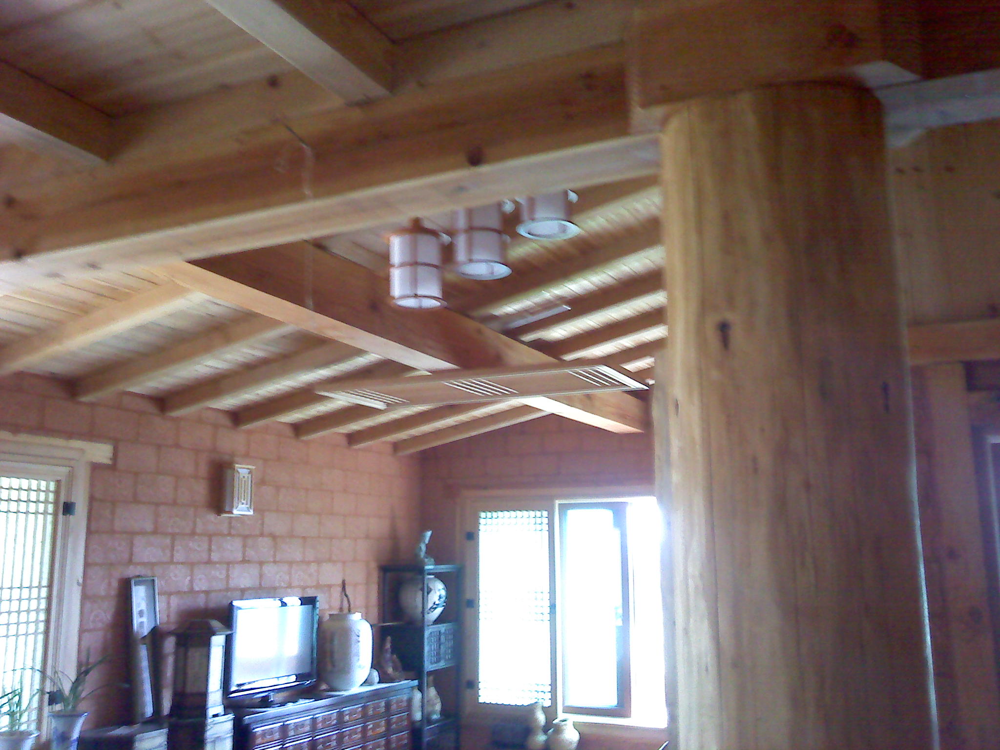 내부는 기둥과 보 서가래는 모두 원목을 깍고 재재해서 시공하였습니다.
