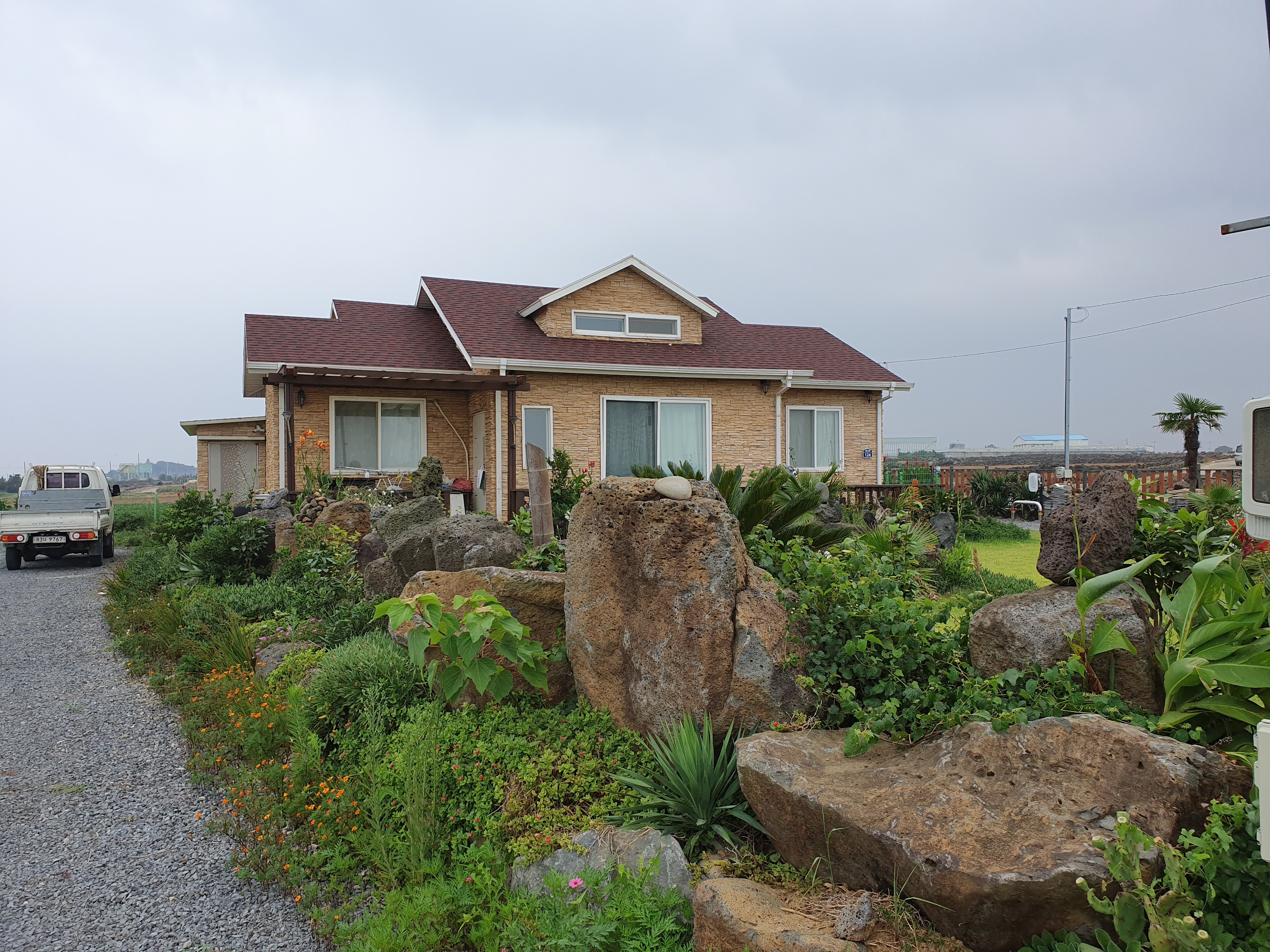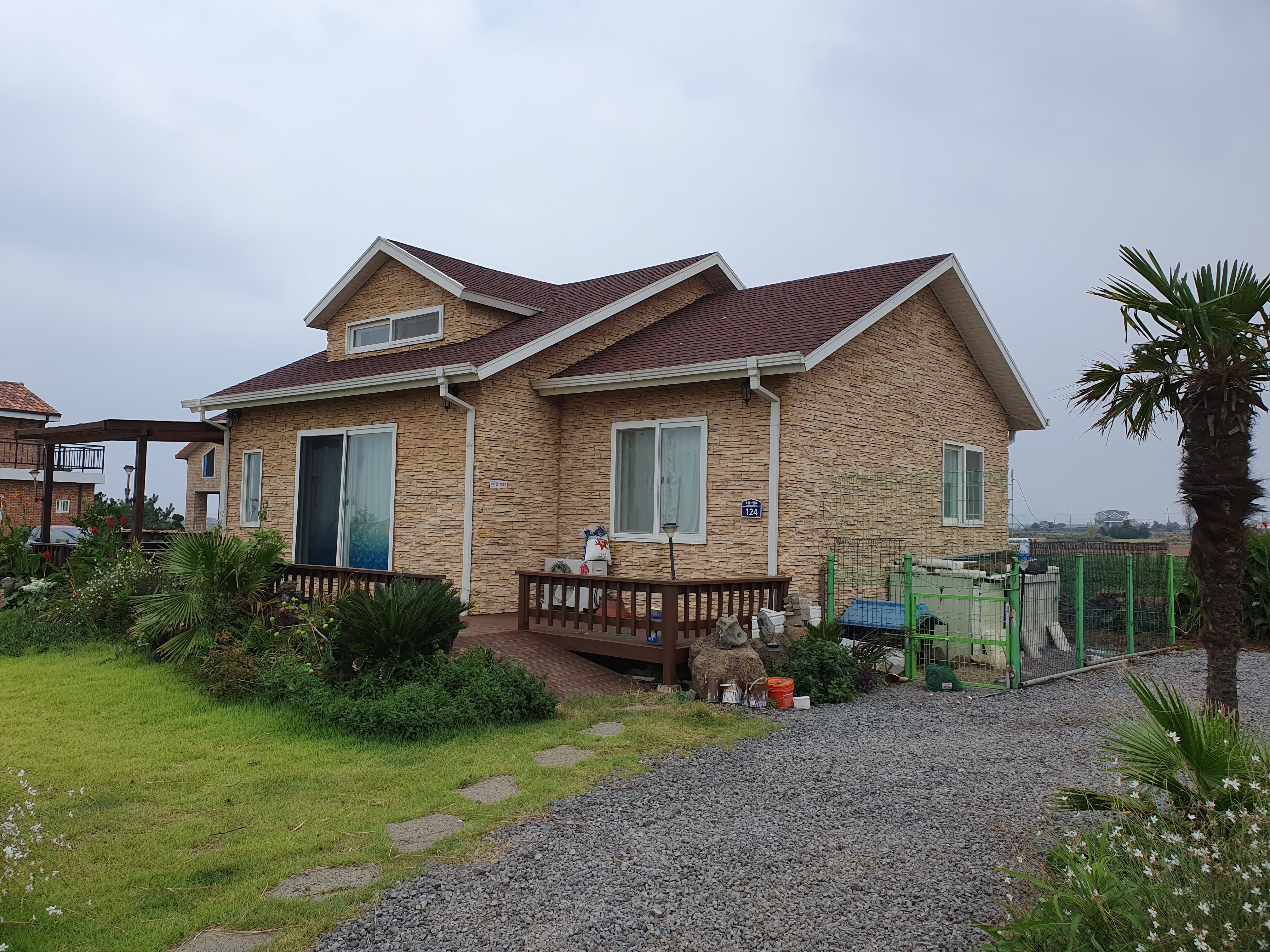 바람과 태풍이 심한 지역이라 튼튼한 구조가 되도록 시공을 하였고 바람과 진동에 외장재가 날아가거나 진동으로 떨어 지지 않게 특히 신경쓴 주택