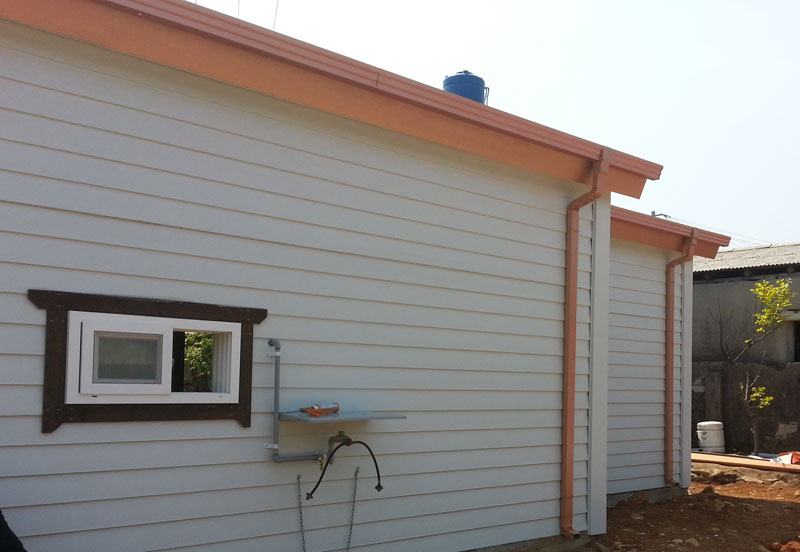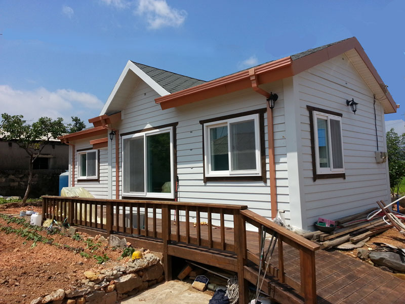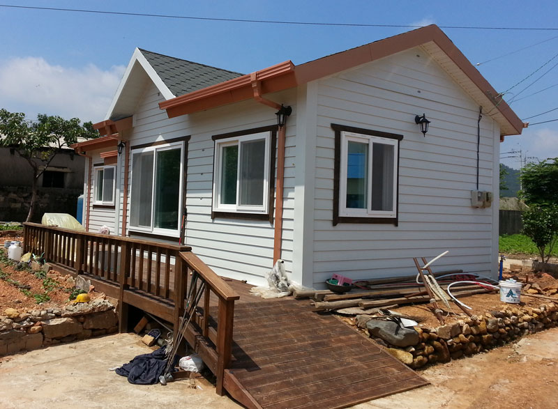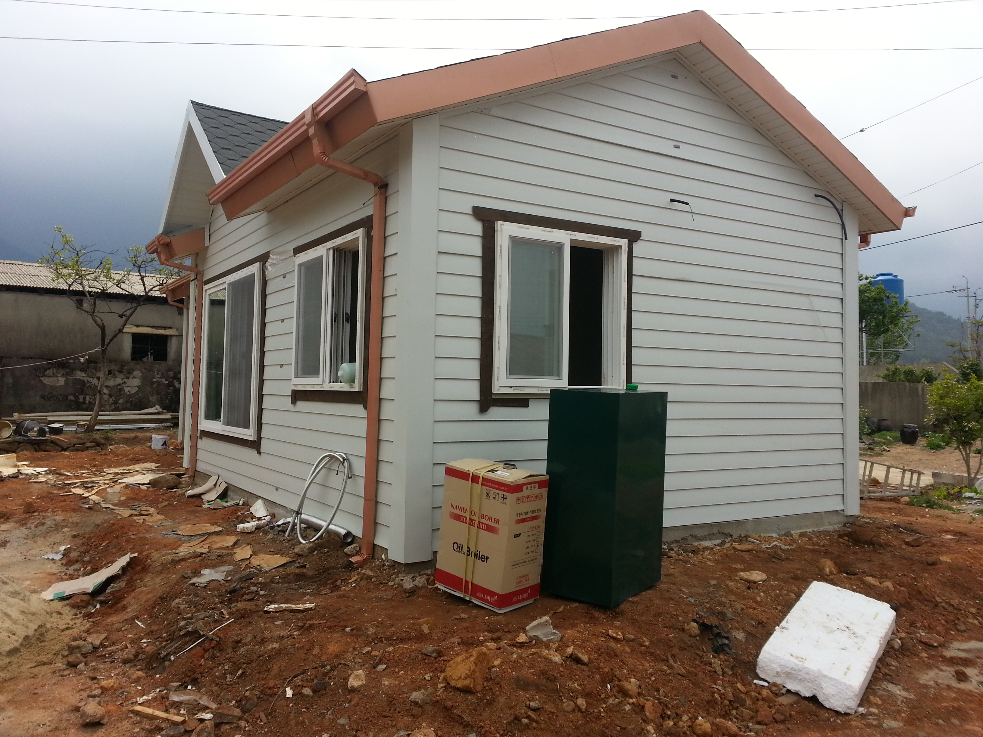 남해 작은 마을에 노부부가 살 작고 아담한 주택으로 최소비용만으로 단열성능이 좋은 집을 짓고 싶어 하는 건축주의 부탁으로 가성비가 놓은 자재를 선택 해서 지은집